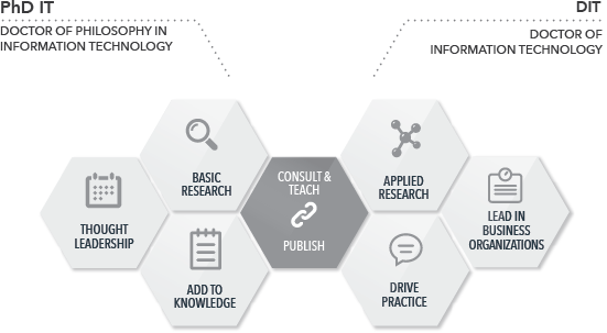 Talley agrees. “The DIT concentrates on looking at what best practices should be. It focuses on business problems and practical application in the real world. What problems exist in business today? What is an issue you can focus on and solve? Whereas the PhD IT focuses more on developing models, like the PMBOK [Project Management Book of Knowledge], or extending existing models.”